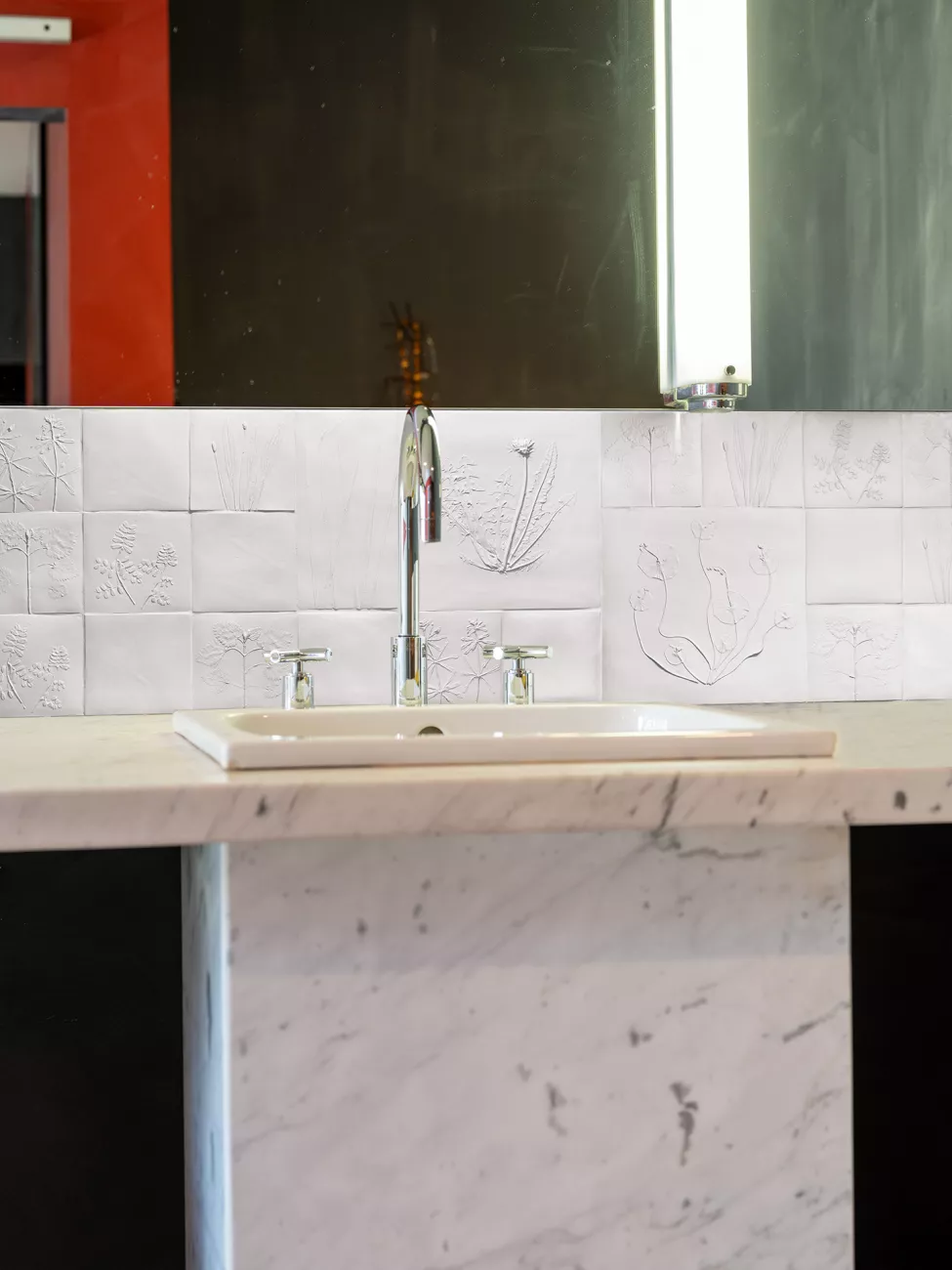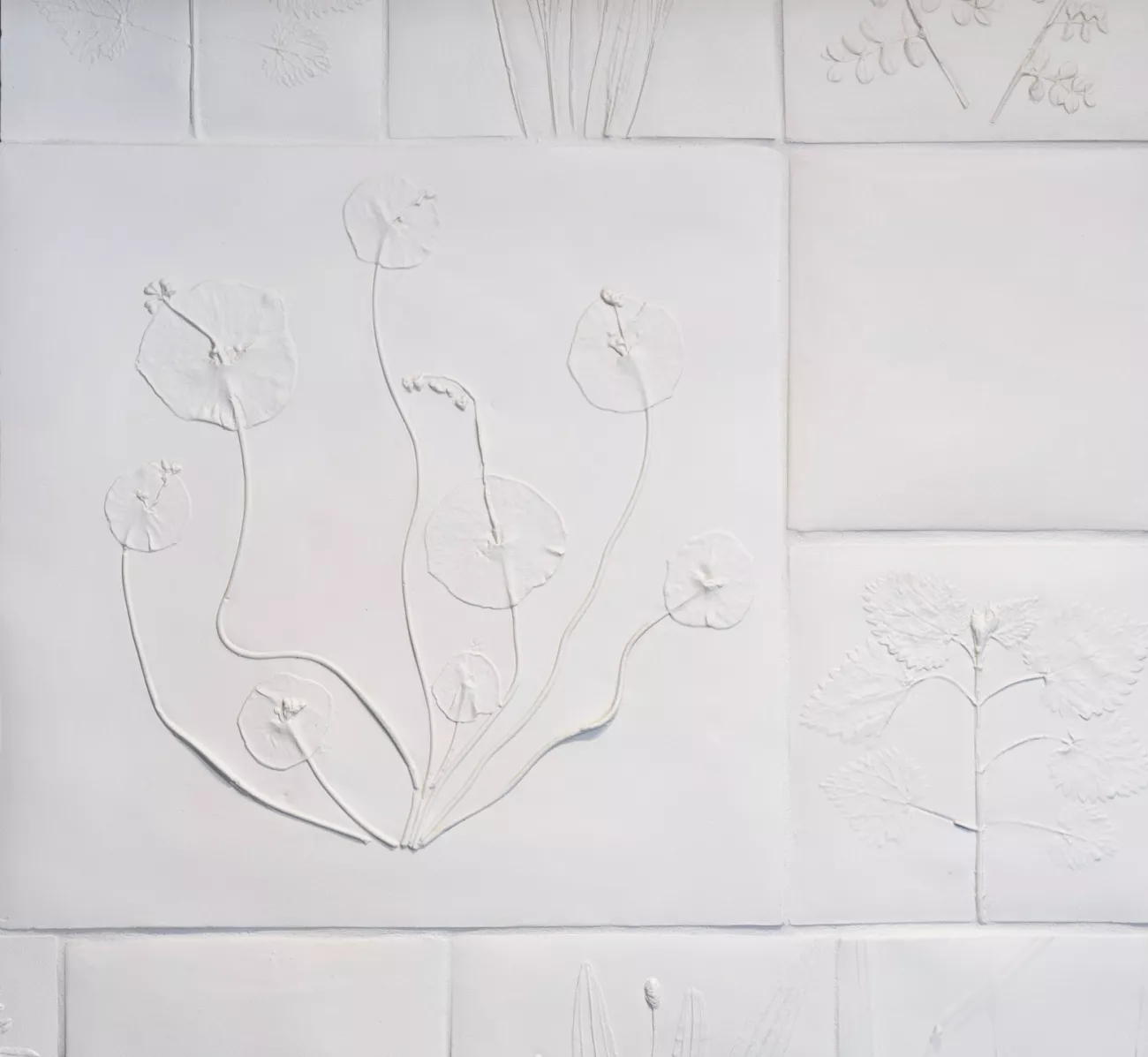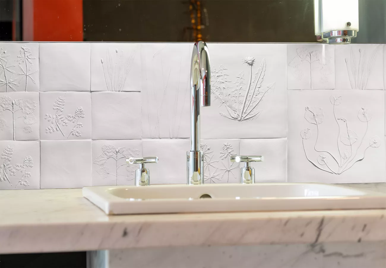 Les carreaux sont composés d'empreintes de plantes sauvages en relief.